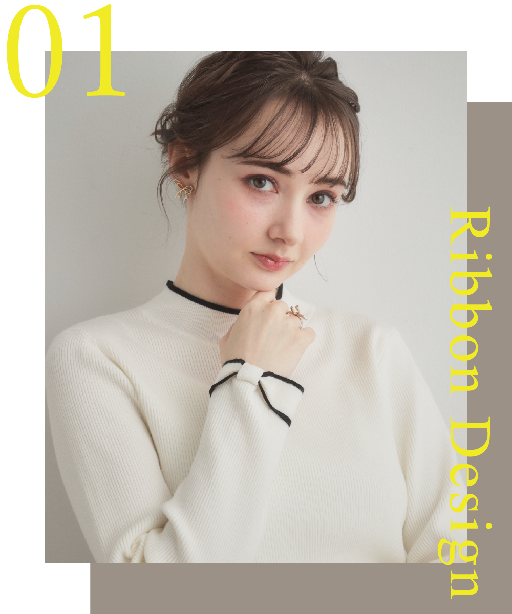 【着映え】リボンカラー デザインニット
