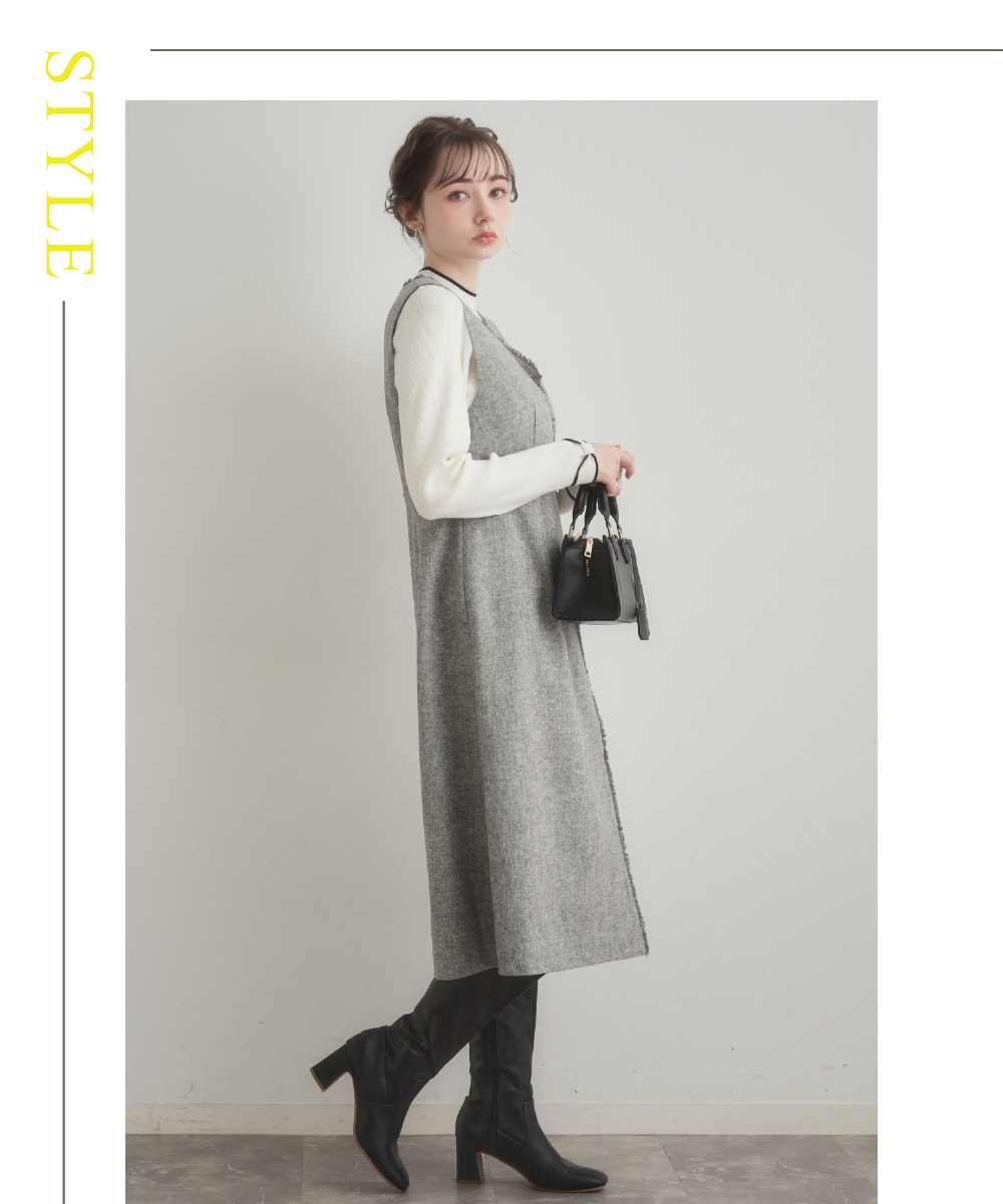 【通勤】フリンジツイードジャンスカ