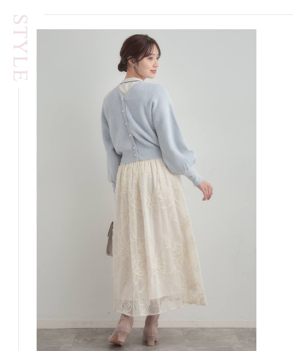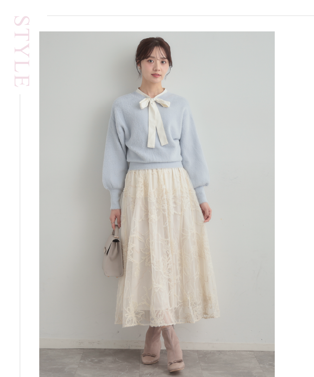 【通勤】ラメ刺繍ブークレチュールスカート