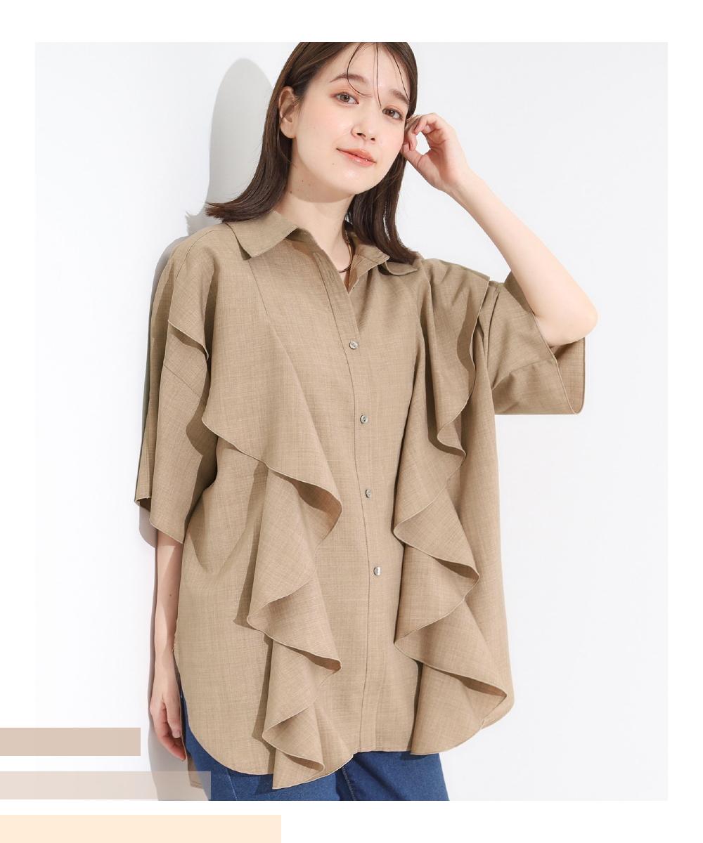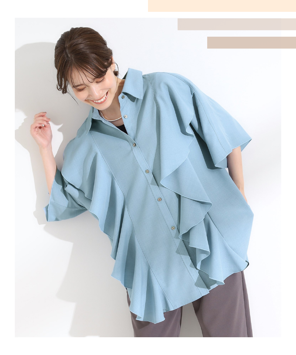 【洗える/S-LL】大きめのフリルが印象的 デザインブラウス