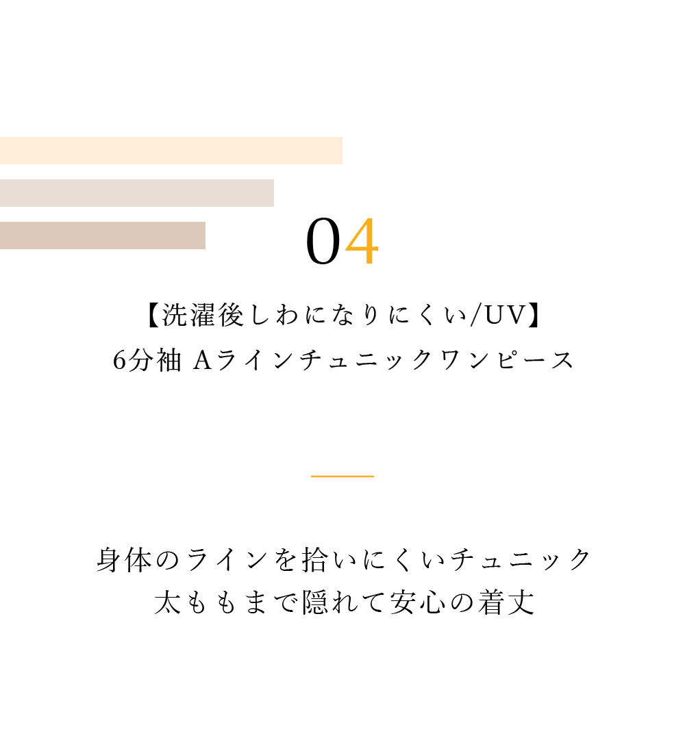 【S-LL/洗濯後しわになりにくい/UV/6分袖】コットン風 Aラインチュニックワンピース