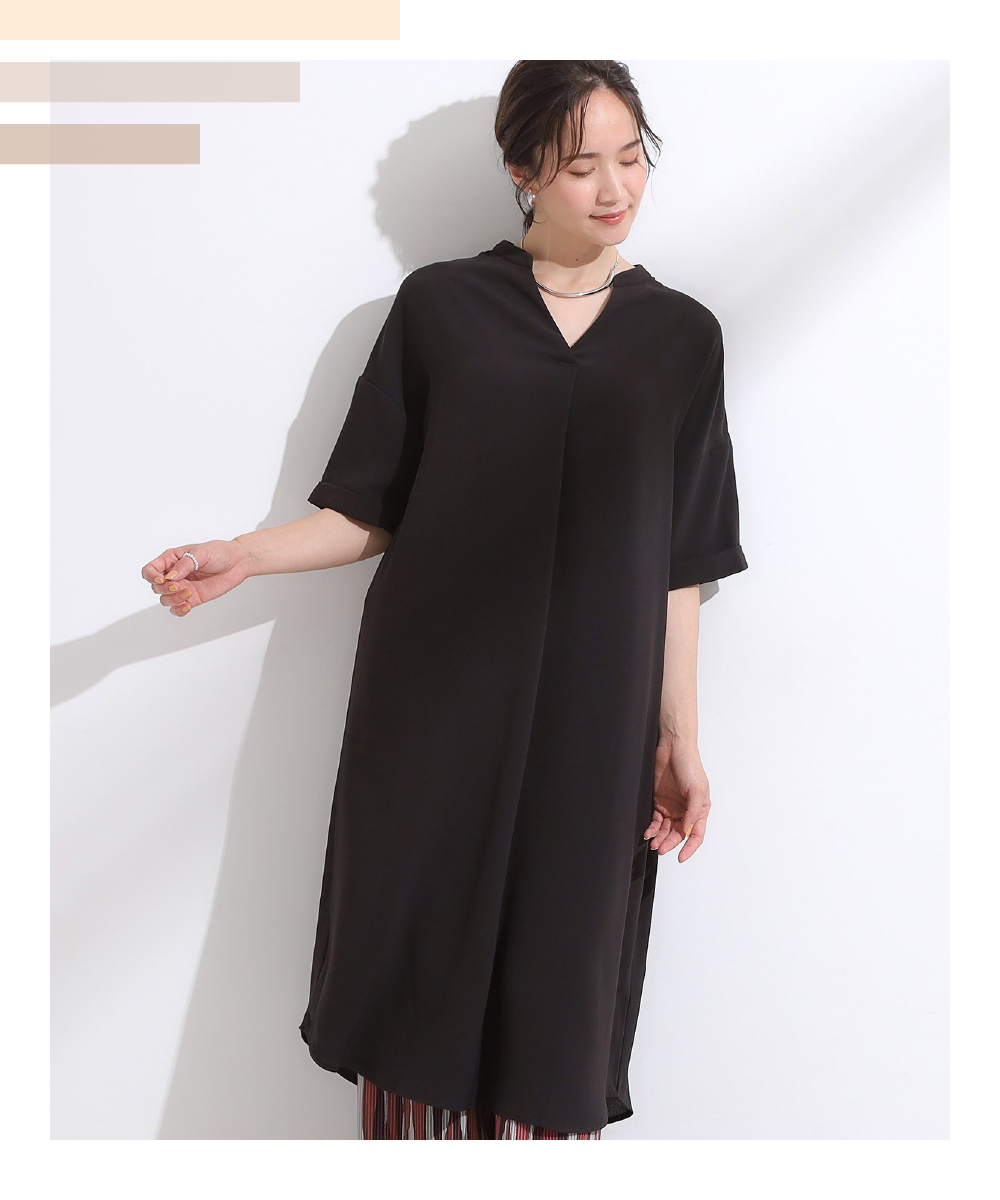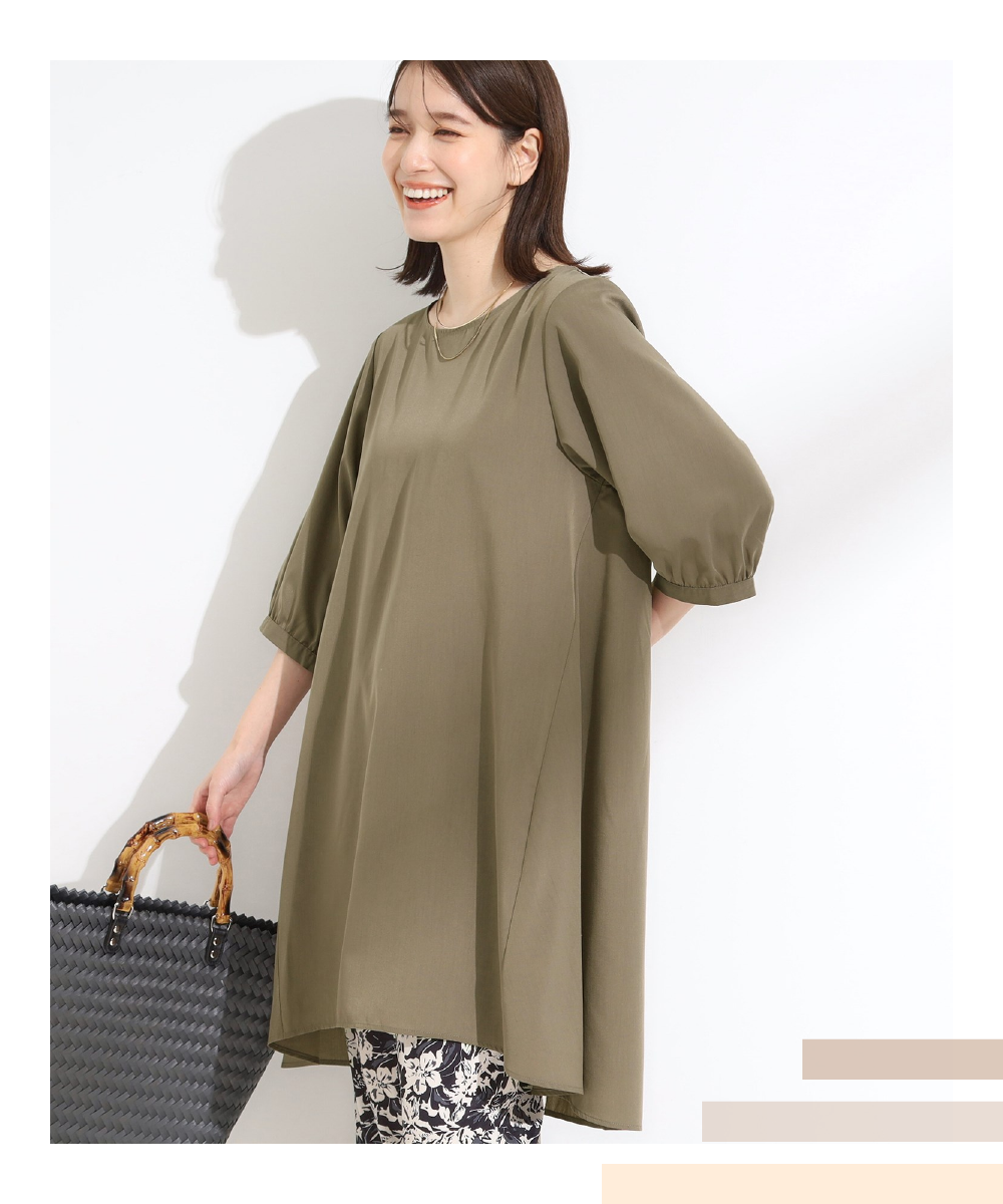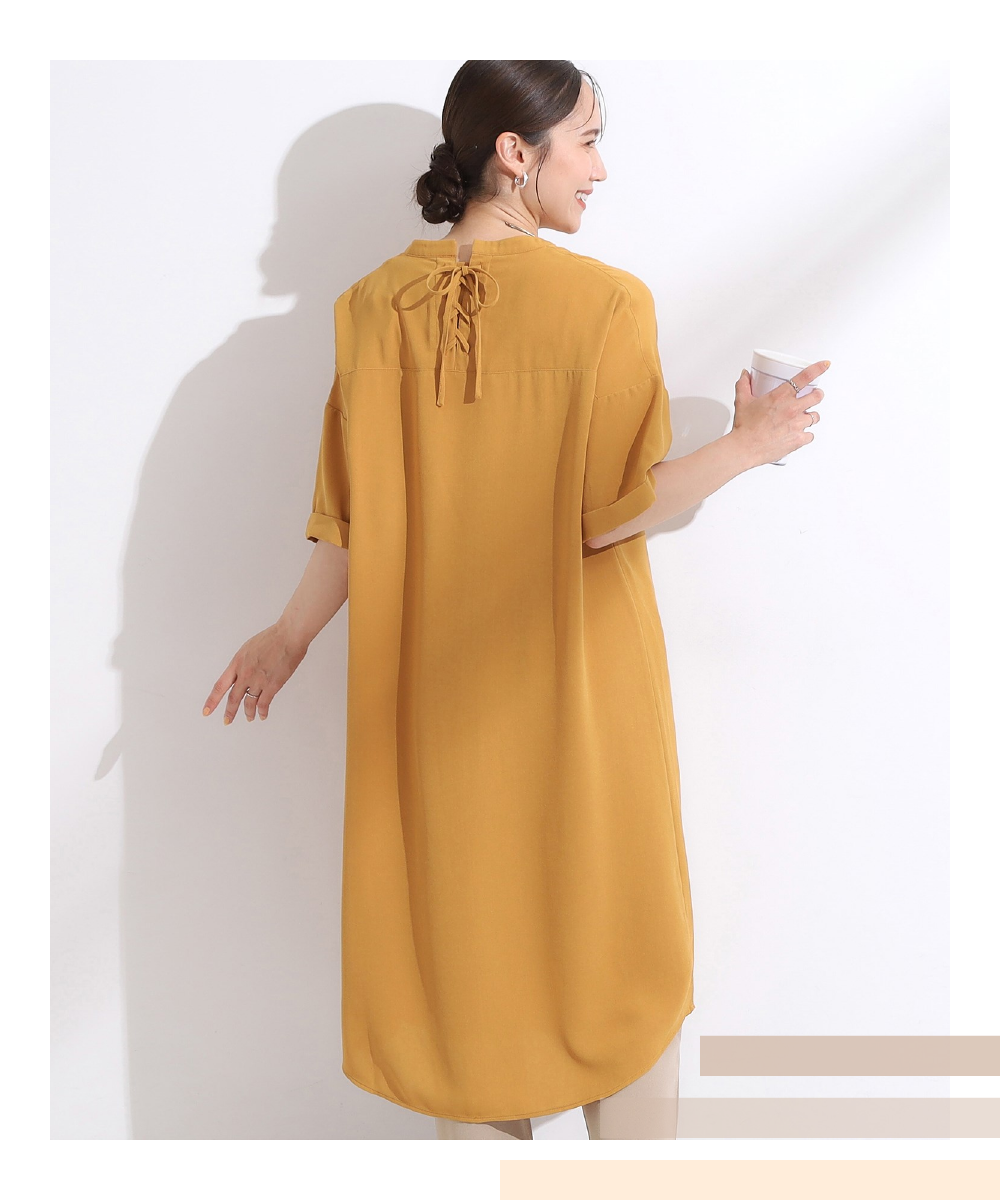 【洗える/S-LL/洗濯後しわになりにくい】バックレースアップチュニック