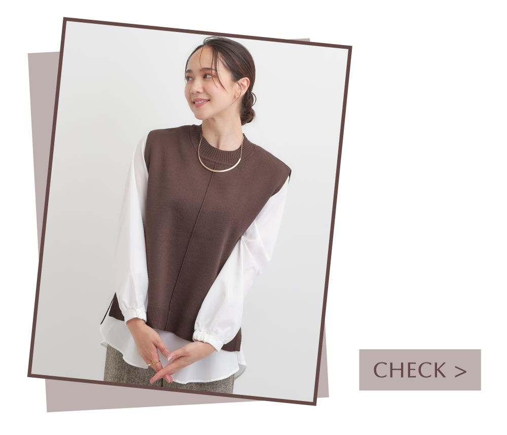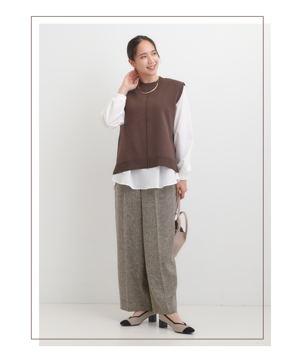 【S-LL/2点セット】着回し自在 ニットベスト+フレアブラウス