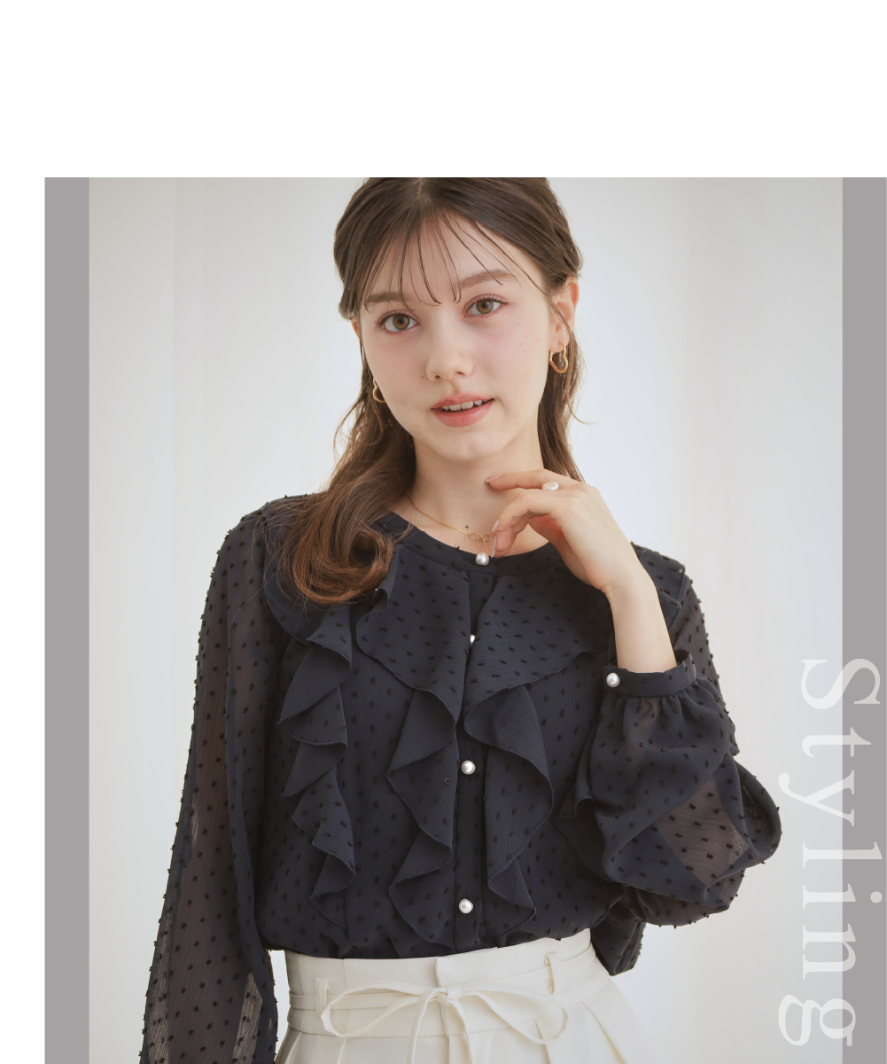 【洗える・着映え】ドビードット フリルブラウス