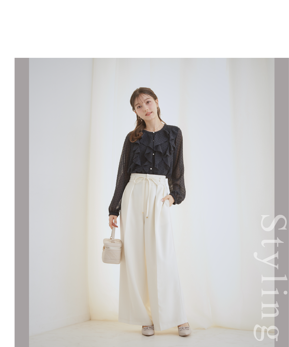 【洗える・S-LL】細リボンデザイン タックワイドパンツ