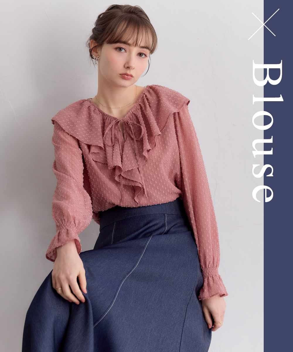 【洗える・リボン取り外し可】フリルジョーゼットブラウス
