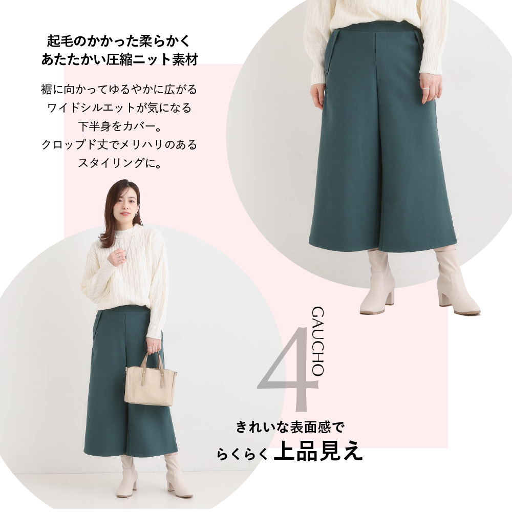 【洗濯機可/S-LL】美脚見え あったか圧縮ニット ガウチョパンツ