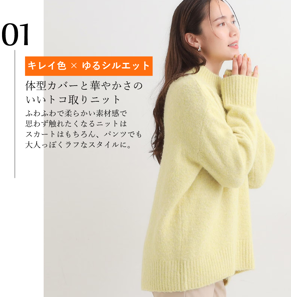 【絶妙なゆるピタ/洗濯機可】ちくちくしにくい リブハイネックやわらかニット