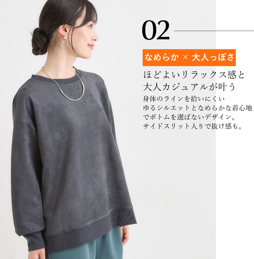 【S-LL】なめらかタッチが癖になる スエード調トップス